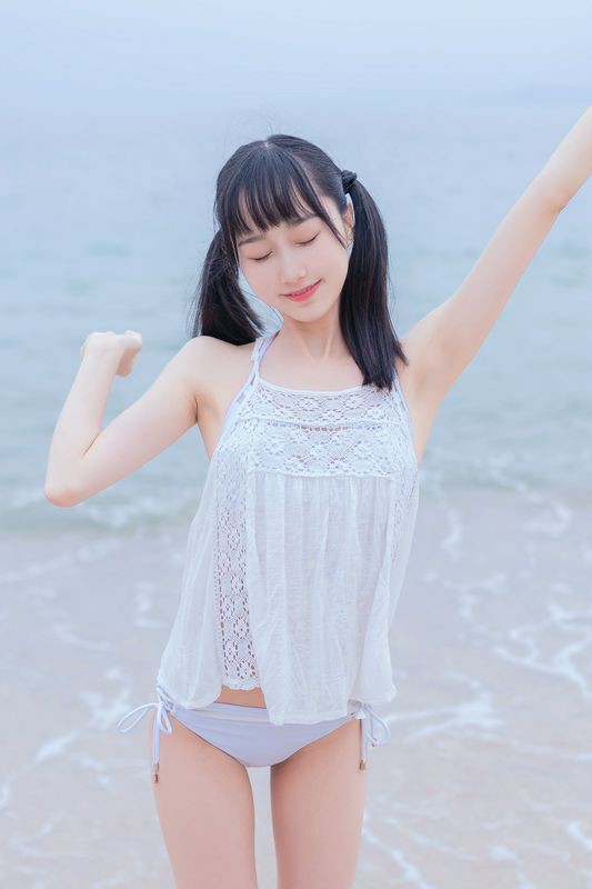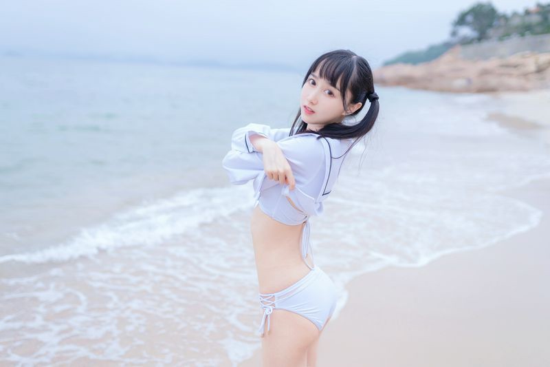 木绵绵海边白色比基尼